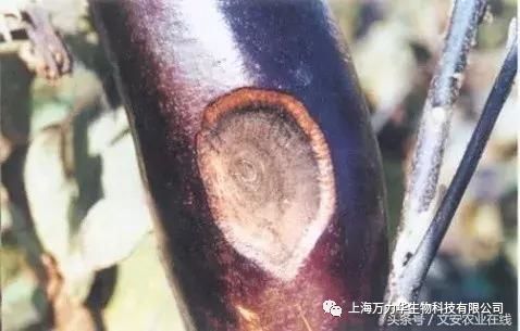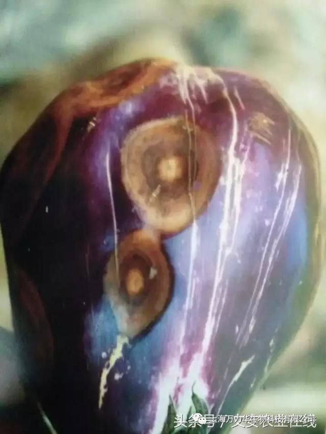 病部呈黑色,革质,多从果柄向下伸展,果实出现白色斑块,成熟果实长黄色、下陷病斑,后渐渐变为黑,末了成为僵果。