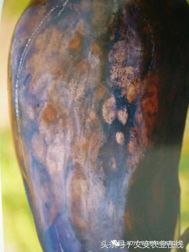 卵形的凹陷斑,上布满轮纹状枚举的小黑点,天色潮湿易腐臭。