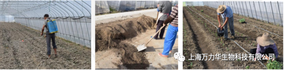 方案说明: 草莓播前沾根:木霉菌制剂稀释10-20倍蘸根后定植 1.5公斤的木霉菌可湿性粉剂与有机肥混拌,撒施到草莓畦,再定植 |